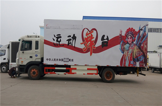 | 整车说明: | 车厢顶棚封闭,并采用衍架结构,可升降,车厢两侧板可展开,与顶棚形成整车舞台顶棚;活动舞台板可折叠于车厢内,通过展开装置展后与固定舞台台面形成整车舞台台面;底盘大梁部分设有支撑装置。该车是进行舞台文艺表演的专用车辆。侧防护采用冷弯型钢/Q235,焊接连接,后防护采用冷弯型钢/Q235,焊接连接,后防护截面高度尺寸100mm, 截面宽度尺寸50mm,下边缘离地高度490mm。ABS控制器型号/生产企业:VIE ABS-II/浙江万安科技股份有限公司。可选装LED屏,可选装不同形式后门 | ||