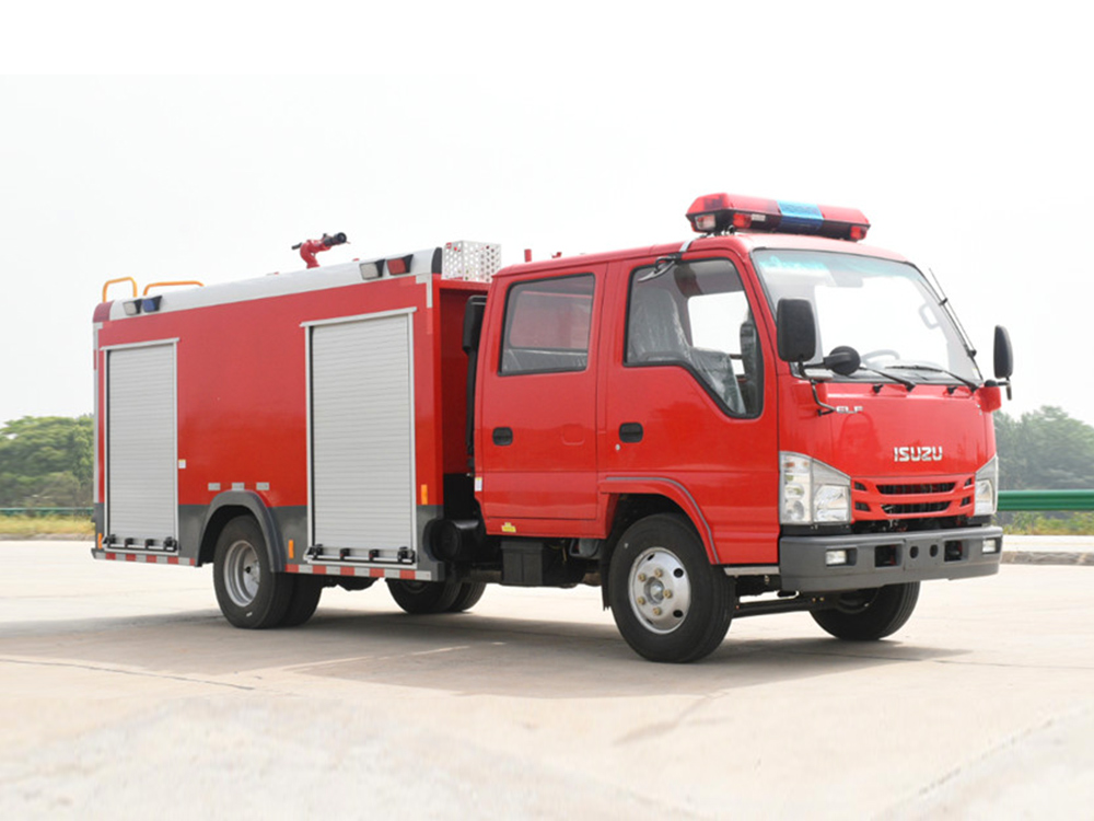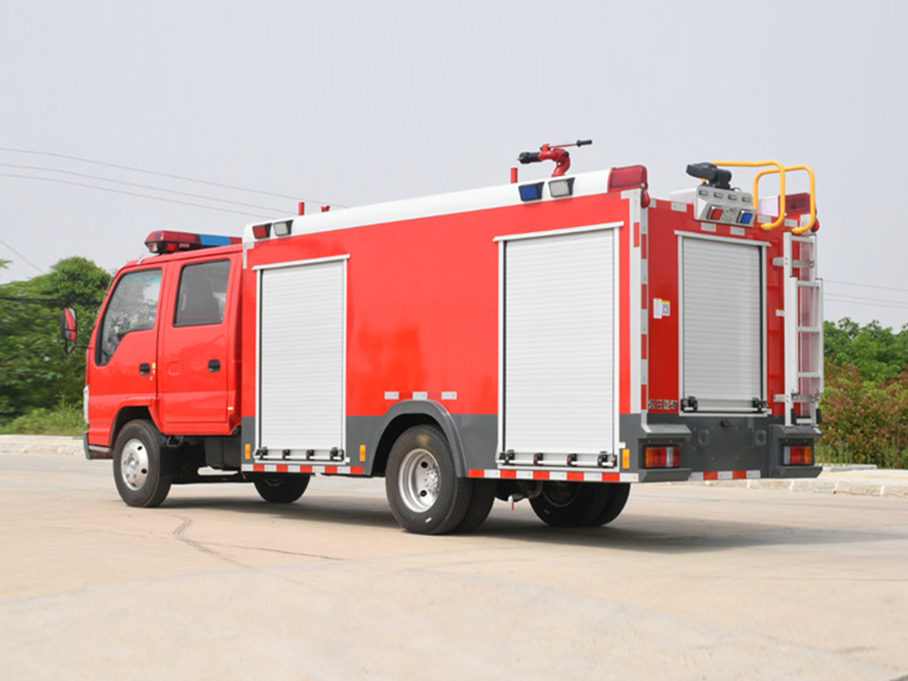消防泵在箱体中间或者后置,泵房左右两侧4个出水口、器材箱左右后侧均有新款易拉高强度铝合金卷帘门。