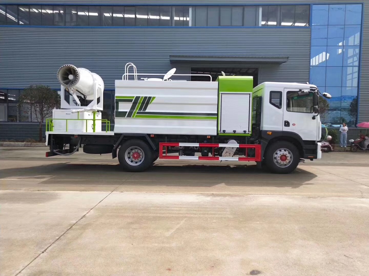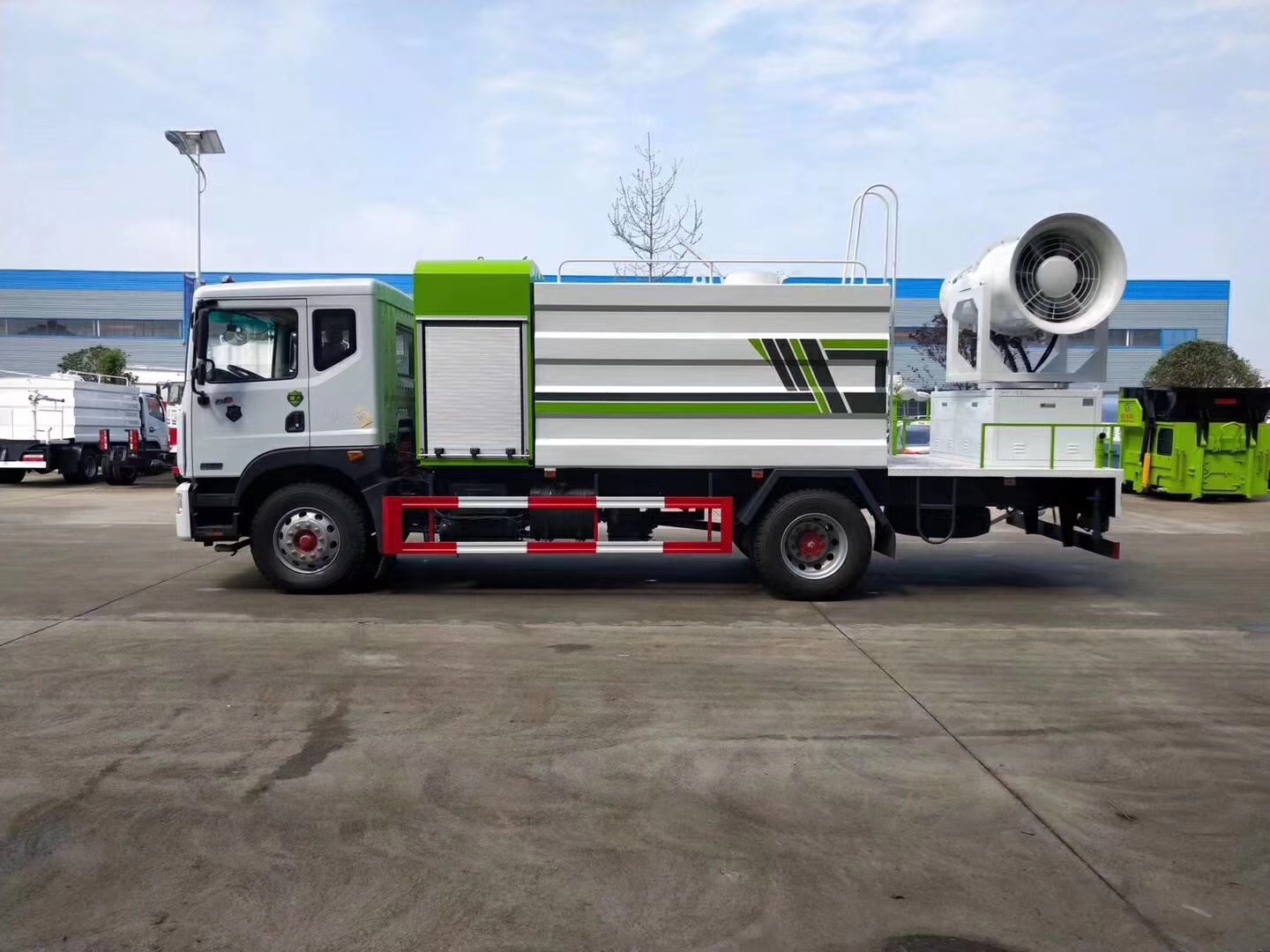 | 整车说明: | 专用装置为抑尘雾炮,用于城市抑尘.整车长/轴距对应关系为(mm):7950/3950,8500/4500,8700/4700,9000/5000,9300/5300,9600/5600.防护材料:Q235,连接方式:左右侧面采用焊接连接,后下部防护采用焊接连接,后部防护断面尺寸(mm):120×60,后部防护离地高度(mm):450.ABS系统生产厂家,型号:焦作博瑞克控制技术有限公司,J ABS.当轴距为(3950mm,4500mm,4700mm)时,整备质量为9980kg,当轴距为(5000mm,5300mm,5600mm)时,整备质量为10500kg.选装后部喷雾装置及摆放样式. | ||