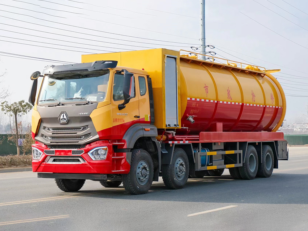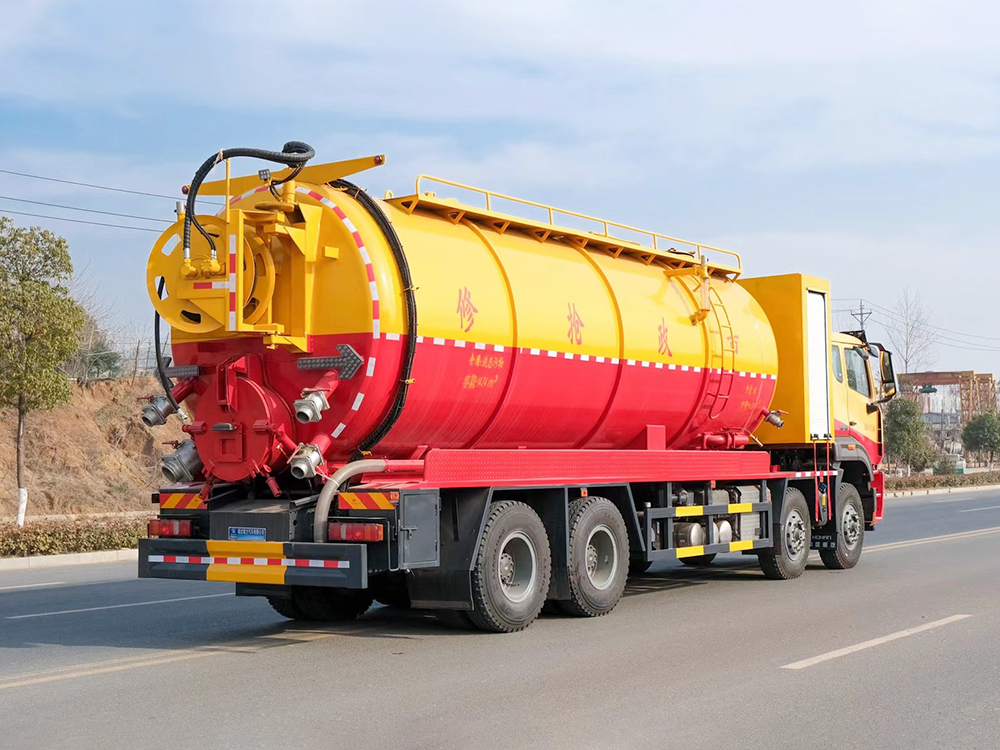 | 整车说明: | 1、该车用于清洗吸污,主要专用装置为真空泵和罐体。罐体尺寸为(直段长×直径)(mm):7100×2350,其中罐体前端为清水罐(直段长3100mm);后端为污水罐(直段长4000mm)。两罐独立,且不能同时满载。清洗功能时用清水罐,吸污功能时用污水罐。污水罐有效容积14.74立方米,介质:液态污物,密度:800千克/立方米;清水罐有效容积11.79立方米,介质:水,密度:1000千克/立方米。2、侧、后防护材料均为Q235,焊接。后防护截面尺寸200×50mm,下边缘离地高500mm。选装罐体顶部护栏样式,选装侧面清洗管,选装后罐口液压开启样式,选装后部阀门,选装后部清洗管卷盘样式,后部箭头灯为选装件。3、仅采用轴距(mm):1800+4600+1350,1800+4575+1400。随底盘选装半高顶驾驶室、选装昼间行驶灯、选装油浴式空滤器。ABS系统型号为446 004 6300,生产企业为威伯科汽车控制系统()有限公司。 | ||